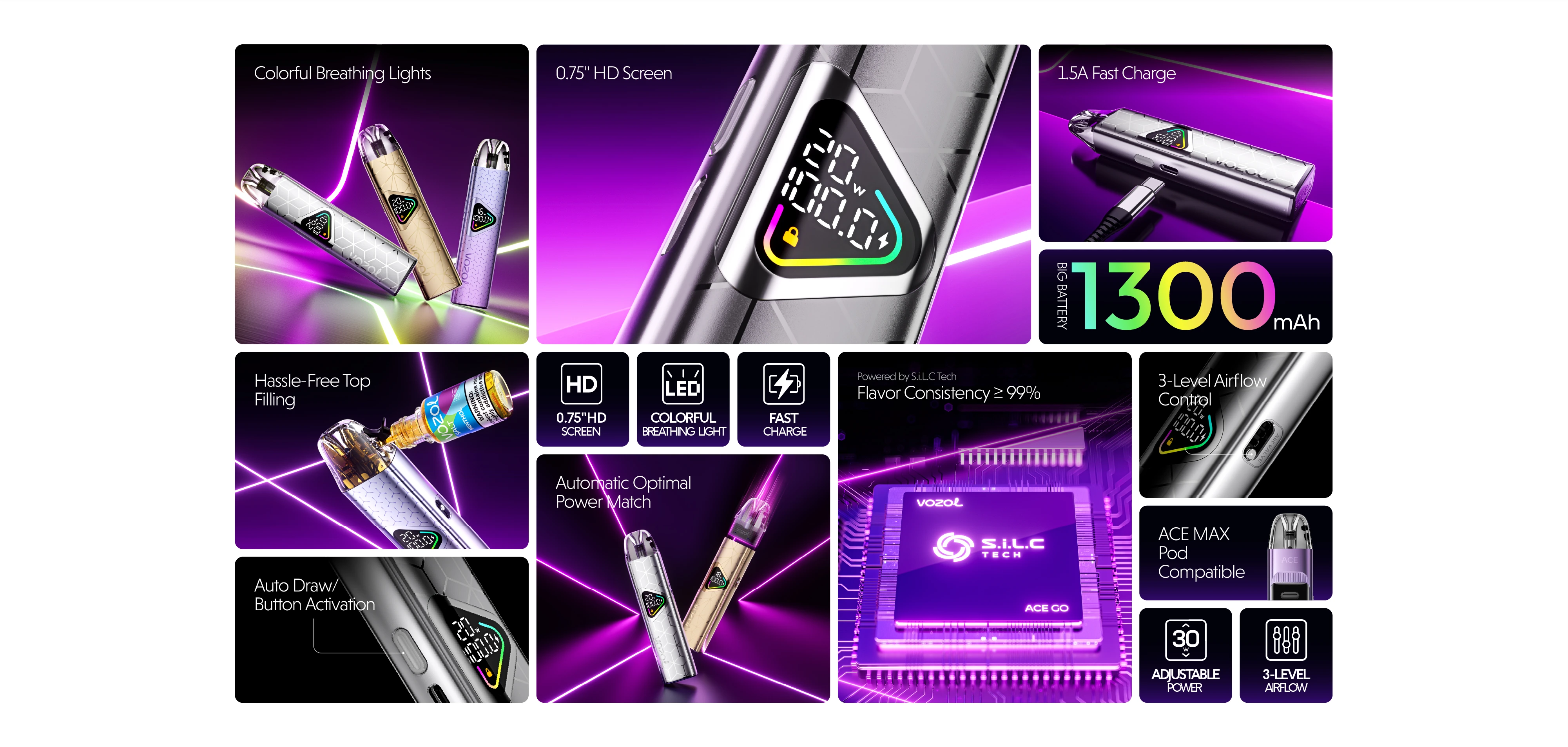Le VOZOL ACE GO n’est pas qu’un simple système de pod : c’est un concentré d’innovations conçu pour ceux qui ne veulent faire aucun compromis entre style, saveur et performance. Avec son design futuriste en aluminium et sa gestion intelligente de l’énergie, il s’impose comme la référence absolue de l’année 2026.